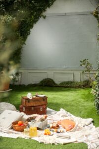 グリーンに囲まれたお庭でピクニック。