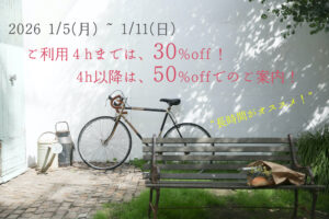 【年明けキャンペーン !】4hご利用まで30%OFF ! 4h以降なんと50%OFF! (2026/1/5~1/11)